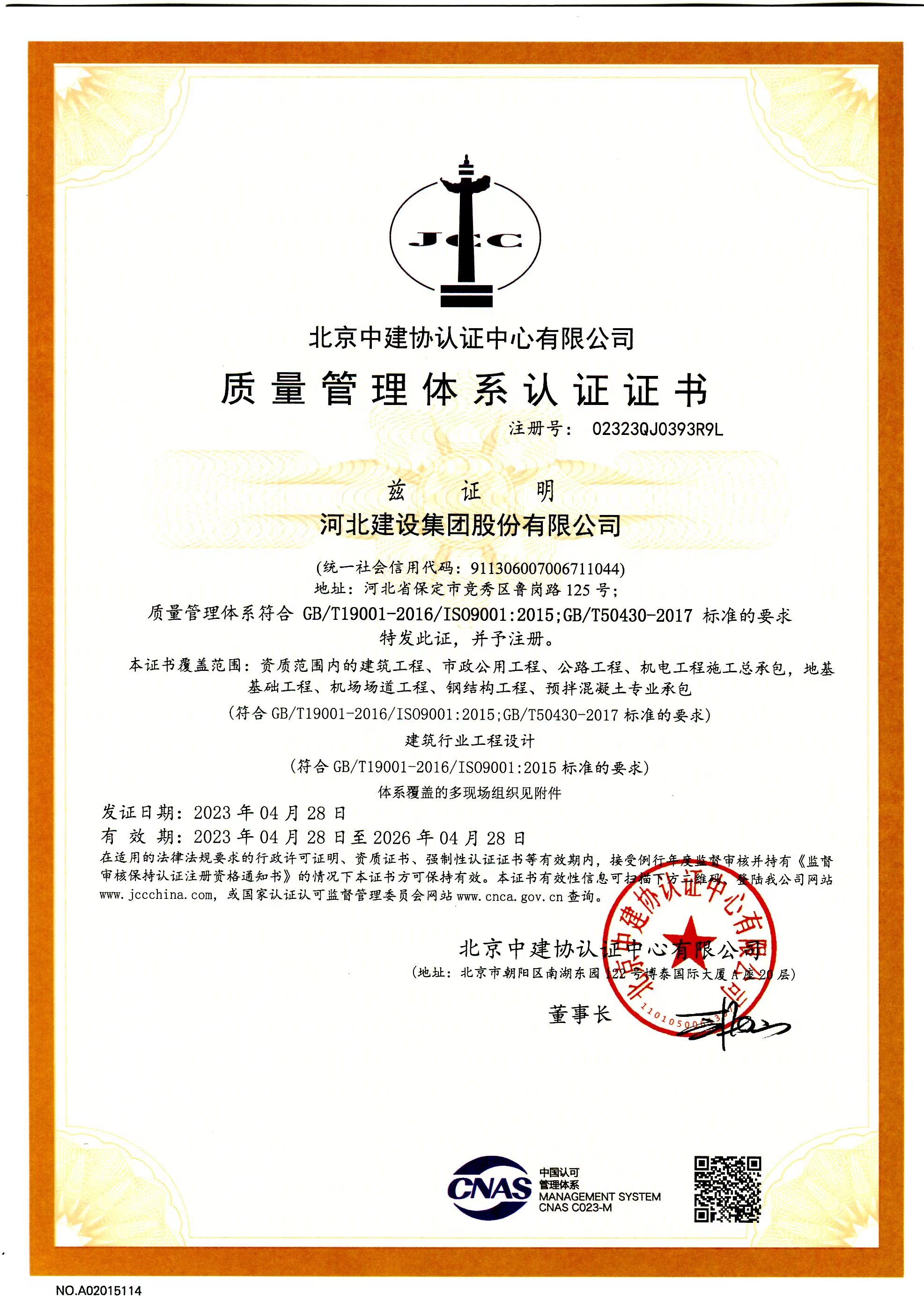 质量管理体系认证证书